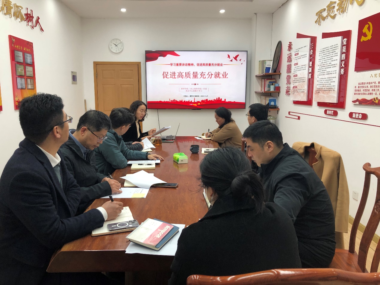唐萍书记带领全体成员首先学习了《促进高质量充分就业》的主要内容。文章深刻指出,就业不仅是民生之本,更是关乎人民群众切身利益、经济社会的健康发展以及国家长治久安的重大问题。在新时代新征程中,促进高质量充分就业已成为就业工作的新定位和新使命。坚持把高校毕业生等青年群体就业作为重中之重。不断推动就业质量的有效提升和就业数量的合理增长,从而不断增强广大劳动者的获得感、幸福感和安全感,为中国式现代化的全面推进、实现强国建设和民族复兴的伟大事业提供坚实的支撑。