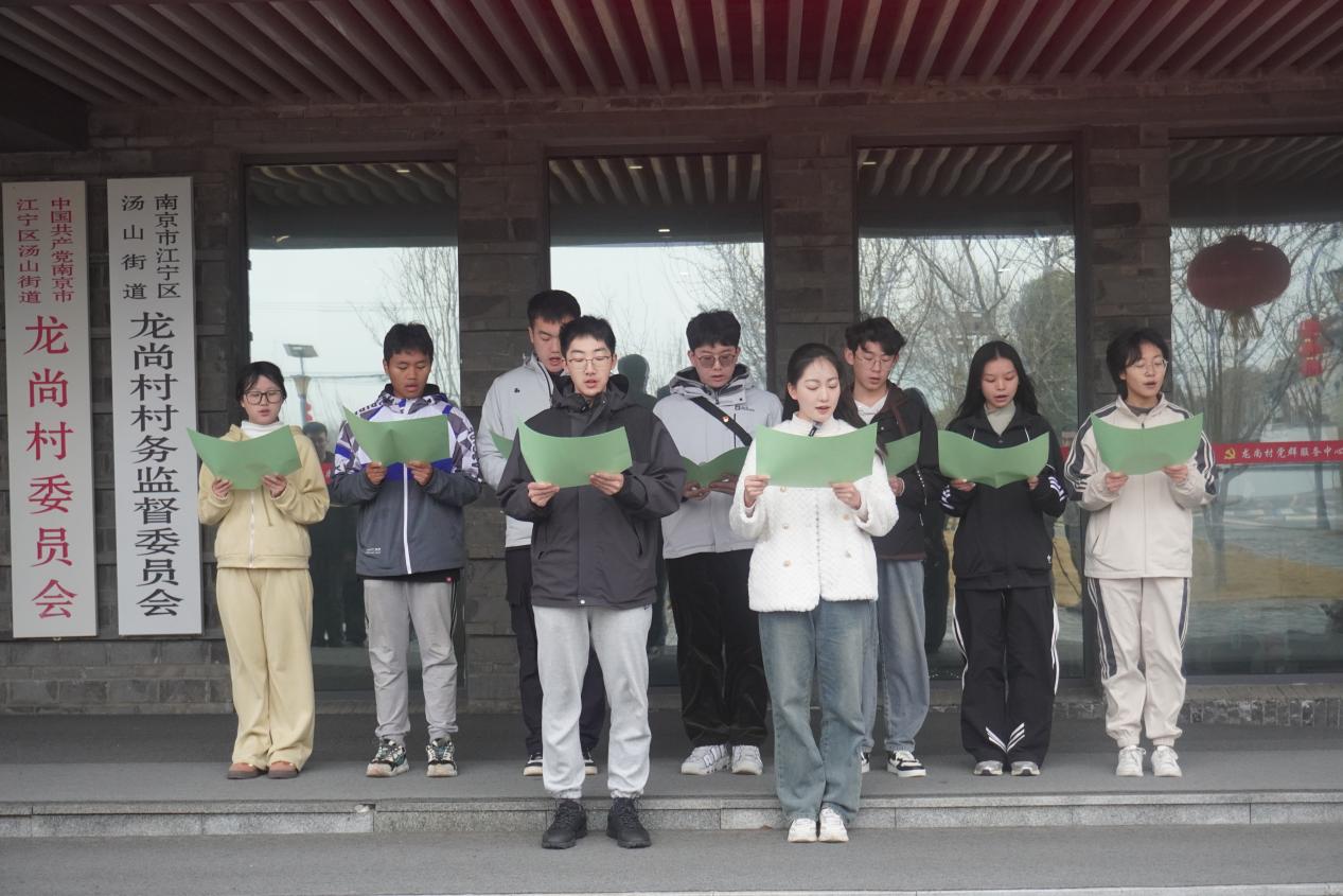 活动由院党委副书记、副院长吴淳主持。首先,龙尚社区负责人吴知梅副书记对沈永宝教授对汤山龙尚社区生态建设的支持表现感谢,对成人a片 师生的到来表示热烈欢迎,期待校社联建共建共赴一场春日之约;随后,沈永宝教授介绍了"龙尚南京椴"的规划与展望,展示了椴树蜜、椴树唇膏和椴树花茶等系列产学研转化成果;接下来,院党委书记唐萍在植树现场为师生讲授微党课,深情回顾了成人a片 与植树节的历史渊源,指出南林人庆祝植树节具有文化自信、制度自信以及专业自信,愿各位同学记得住乡愁、留得住乡情,将对南京美好的记忆和深情栽种在南京这片热土,愿这些带着南京记忆的幼苗,成为大家扎根大地、奉献祖国生态文明建设的坐标和信仰。
