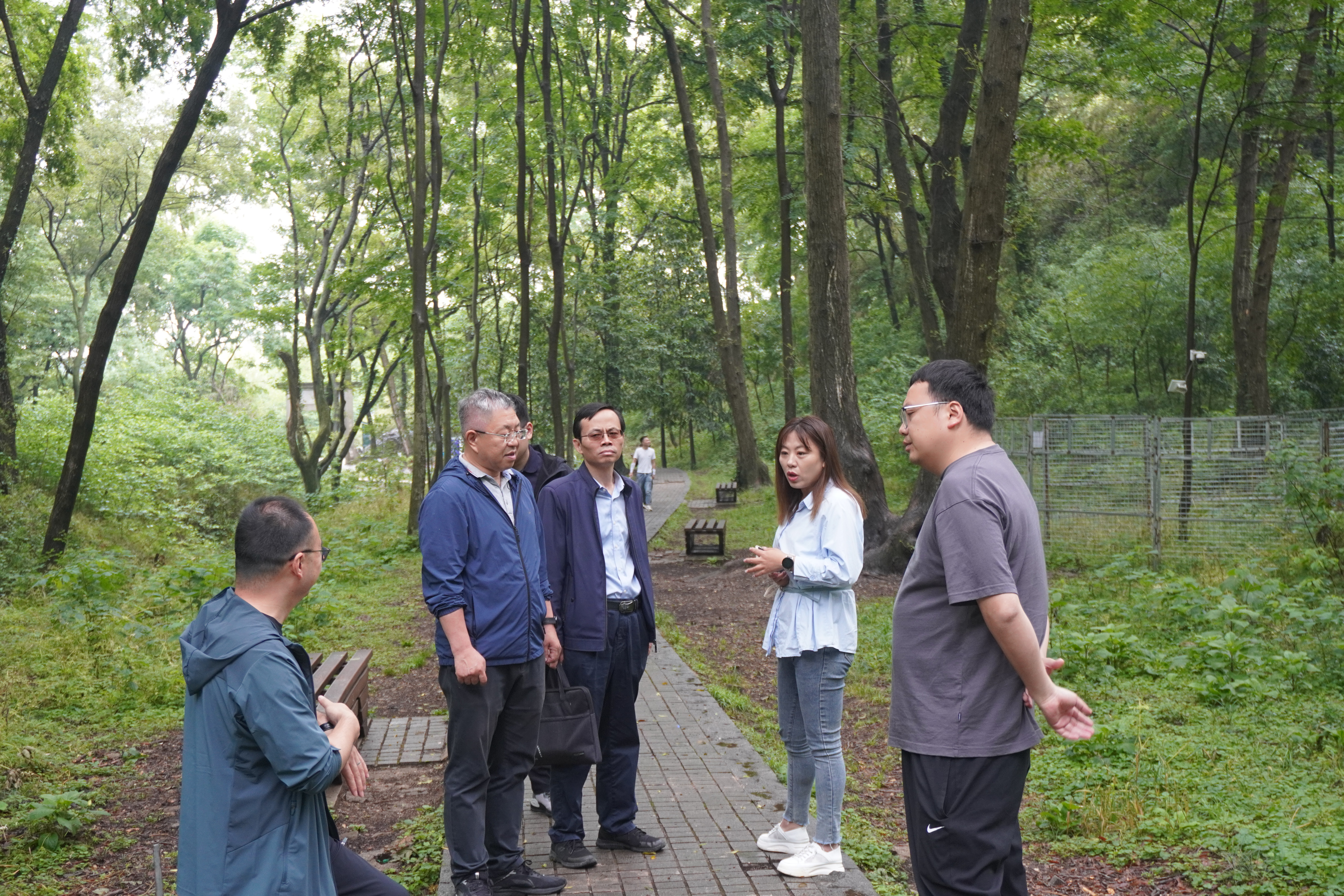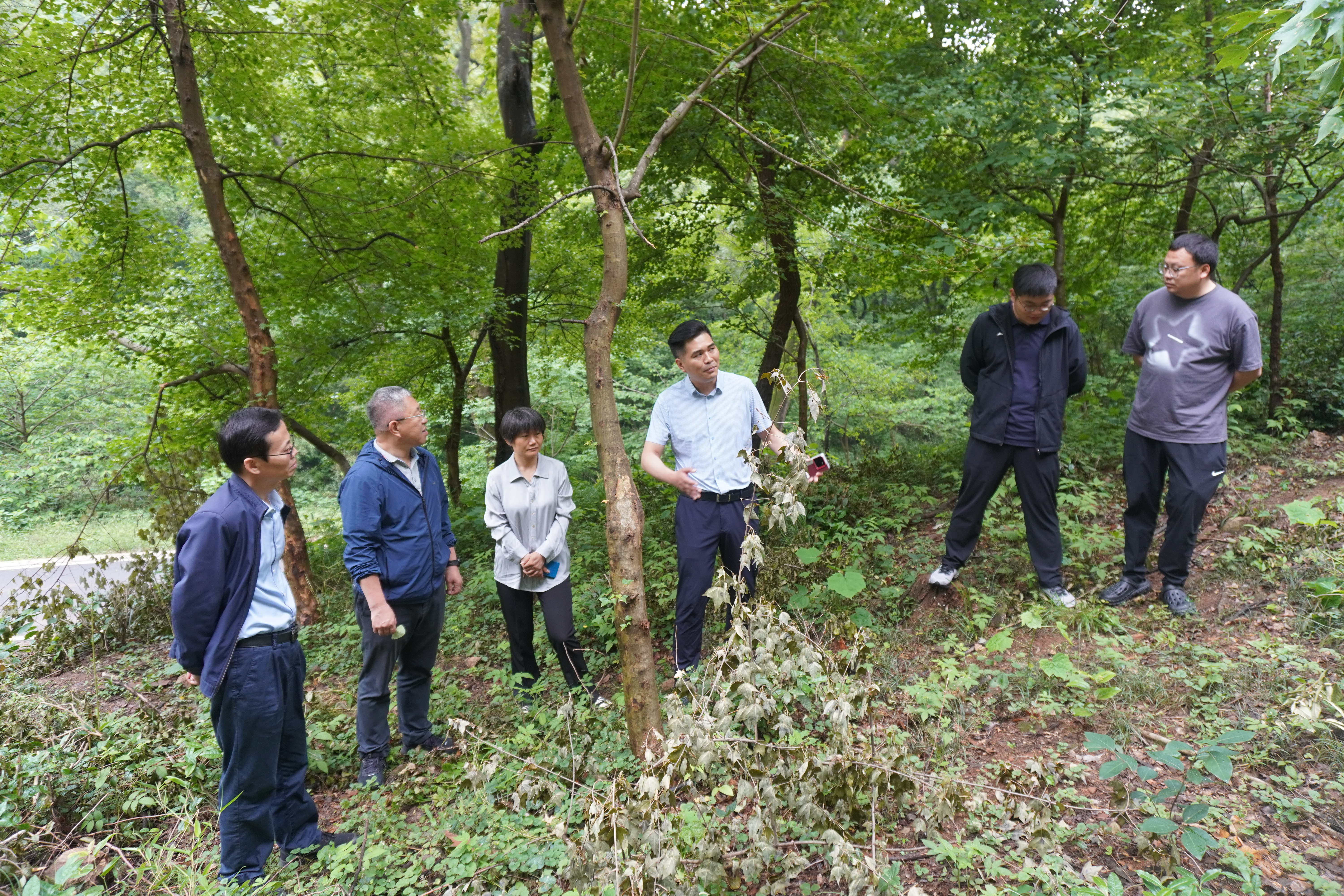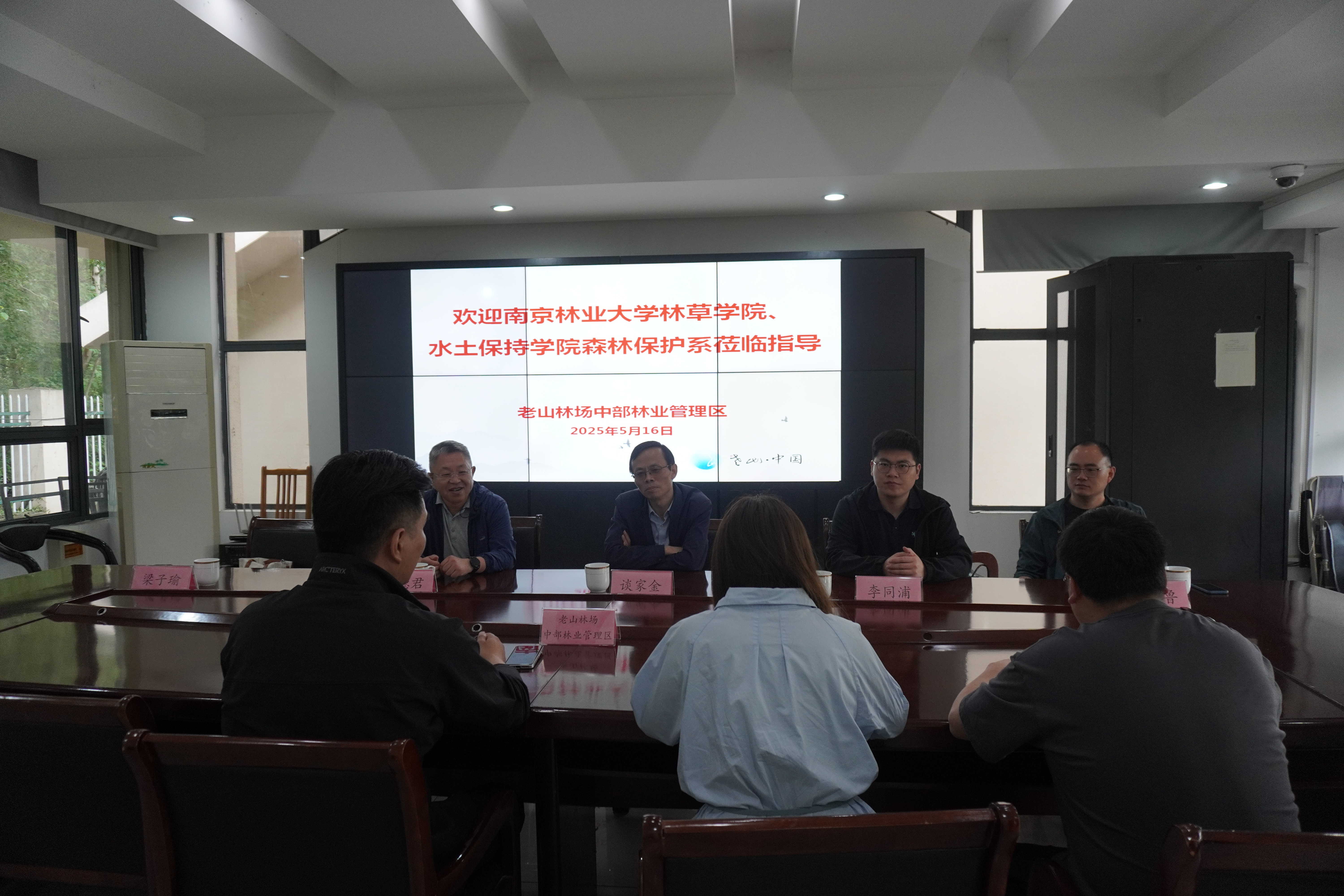 2025年5月16日,学院森林保护系教师党支部书记谈家金,系主任郝德君,青年教师代鲁鲁、李同浦,学院团委书记、学工办主任梁子瑜共同前往老山林场对接后期即将开展的党团共建项目。