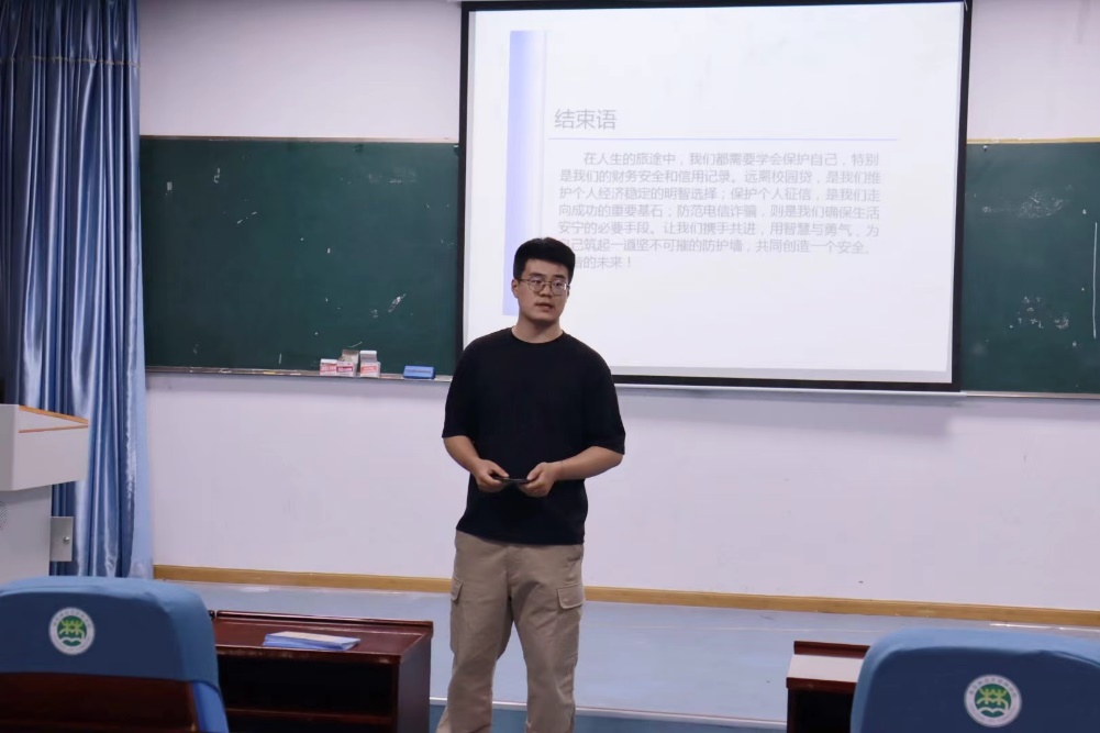 征信是每个人的"经济身份证",对于未来的就业、贷款等方面都有着重要的影响。工作人员向同学们介绍了征信的基本知识,包括征信的作用、如何查询征信报告以及如何保护自己的征信记录。她们强调,同学们在日常生活中要时刻关注自己的征信情况,避免因不当行为而影响到自己的未来。电信诈骗是近年来频发的一种金融诈骗手段,工作人员通过生动的案例向同学们展示了电信诈骗的常见手段和特征,并给出了具体的防范建议。她提醒同学们,在日常生活中要增强警惕,不轻易相信陌生人的电话和信息,遇到可疑情况要及时报警。
