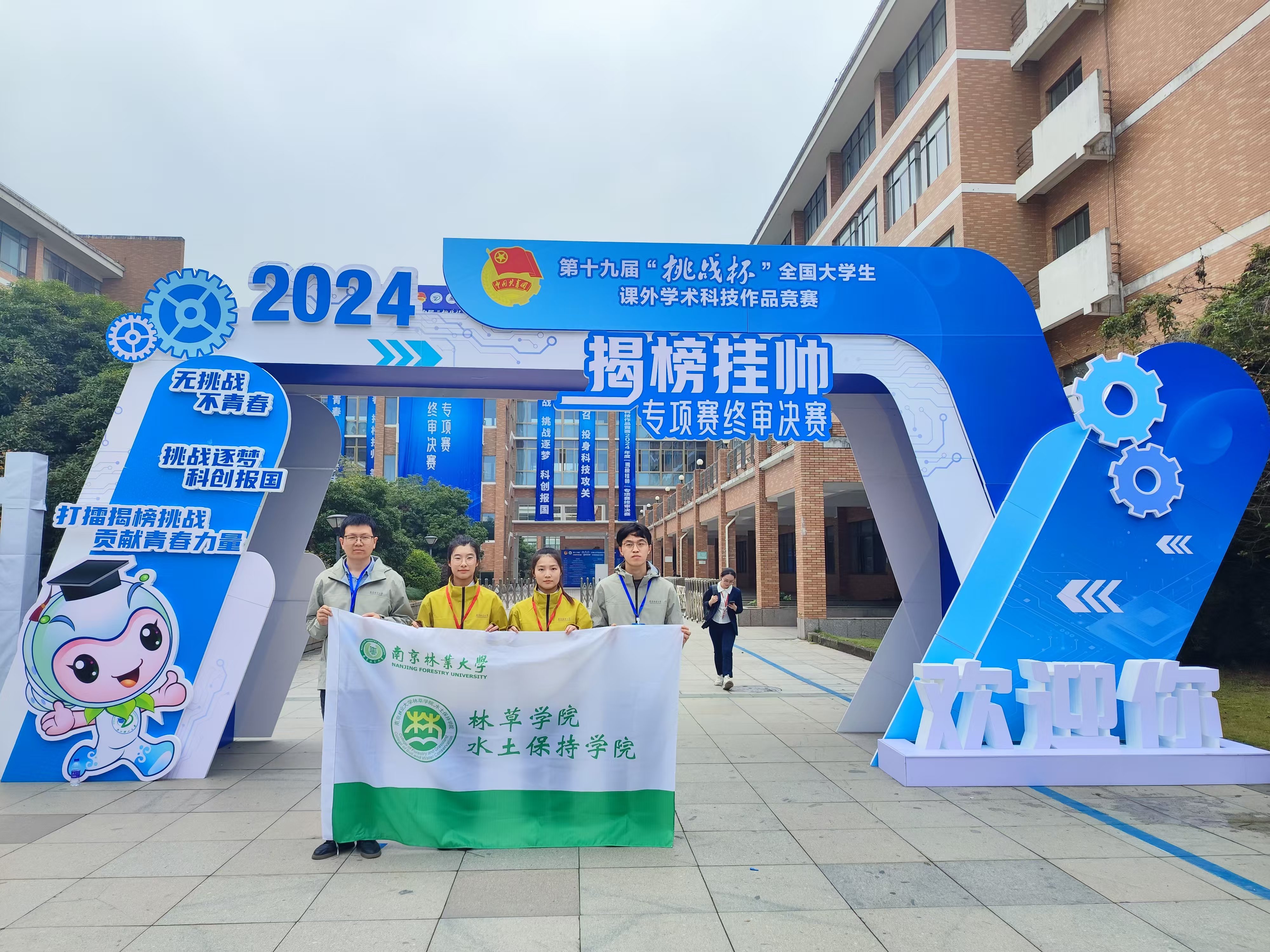 "挑战杯"全国大学生课外学术科技作品竞赛是由共青团中央、中国科协、教育部、中国社科院、全国学联和承办地省级人民政府共同主办的具有导向性、示范性和群众性的竞赛活动。2024年度"揭榜挂帅"专项赛共有56家企事业单位、科研机构、行业协会等发布了前沿性、应用性和群众性较强的选题。自2024年3月赛事榜单竞榜、发榜以来,学院高度重视,不断整合优势资源,完善孵化培育。此次揭榜的选题为中国林学会、中煤长江生态环境科技有限公司共同发布的"森林质量提升与固碳增汇技术研究"选题。参赛团队依托专业学科优势,指导教师全力以赴,参赛同学团结拼搏,校内外专家携手凝练,校团委等职等部门倾力支持,最终参赛项目取得优异战绩。