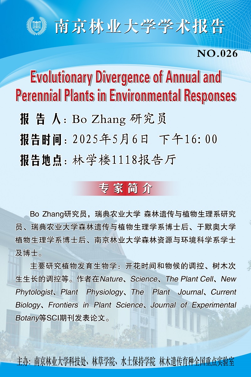 【学术报告】Evolutionary Divergence of Annual and Perennial Plants in Environmental Responses