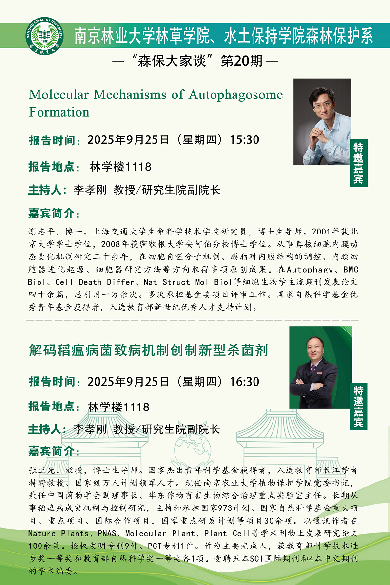 森保大家谈第20期|Molecular Mechanisms of Autophagosome Formation;解码稻瘟病菌致病机制创制新型杀菌剂