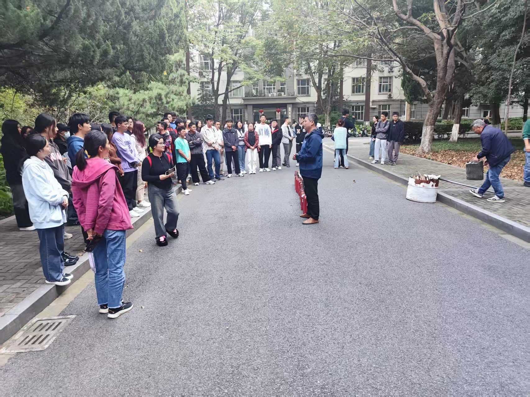 为进一步提升学生的火灾防控和灭火救援能力,10月25日下午,成人a片 邀请校保卫处在林学楼前为学院2024级研究生开展消防技能实操教学演习。 保卫处工作人员向成人a片 参训研究生讲解消防安全重要性,介绍了常用的消防器材、灭火器的正确使用方法、注意事项及火灾现场的灭火要领。