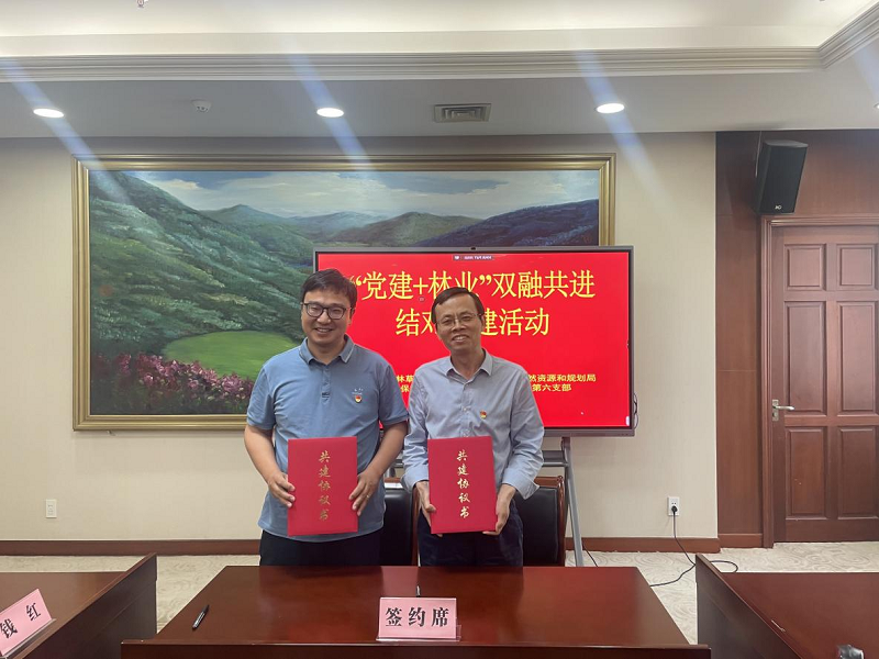 随后,森林保护系党支部书记谈家金与常熟市资规局机关第六支部书记、林业站站长李春涛共同签署《党组织结对共建协议书》,标志着双方在组织联建、资源联享、服务联动的合作机制上迈出实质性一步。