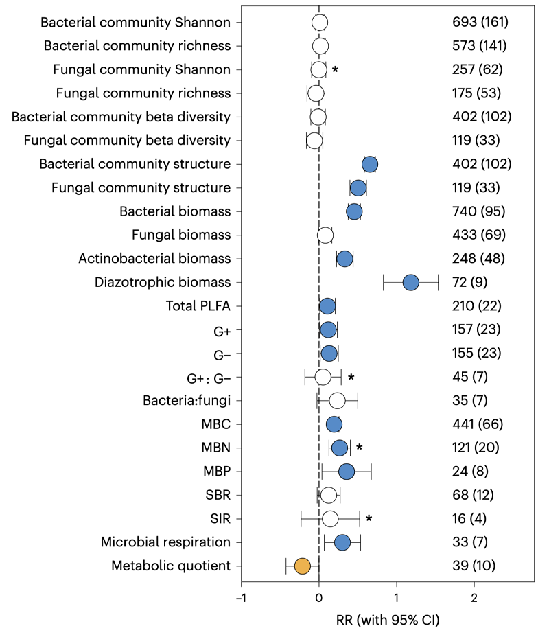6月7日,成人a片 张金池教授团队在《Nature Ecology & Evolution》发表研究成果,揭示全球尺度上微生物接种剂对土壤微生物生物量和多样性的影响。研究成果“Meta-analysis reveals the effects of microbial inoculants on the biomass and diversity of soil microbial communities”以研究论文的形式在线发表于生态学领域著名期刊《Nature Ecology & Evolution》,文章链接://doi.org/10.1038/s41559-024-02437-1。成人a片 2020级博士李翀为论文的第一作者,刘鑫博士和张金池教授为论文的共同通讯作者。浙江农林大学的陈信力教授,俄克拉荷马州立大学的翟路博士、张波博士,吉森大学的Uwe Grüters博士、Christoph Müller教授,以及成人a片 的博士生贾赵辉、马仕林参与了研究。