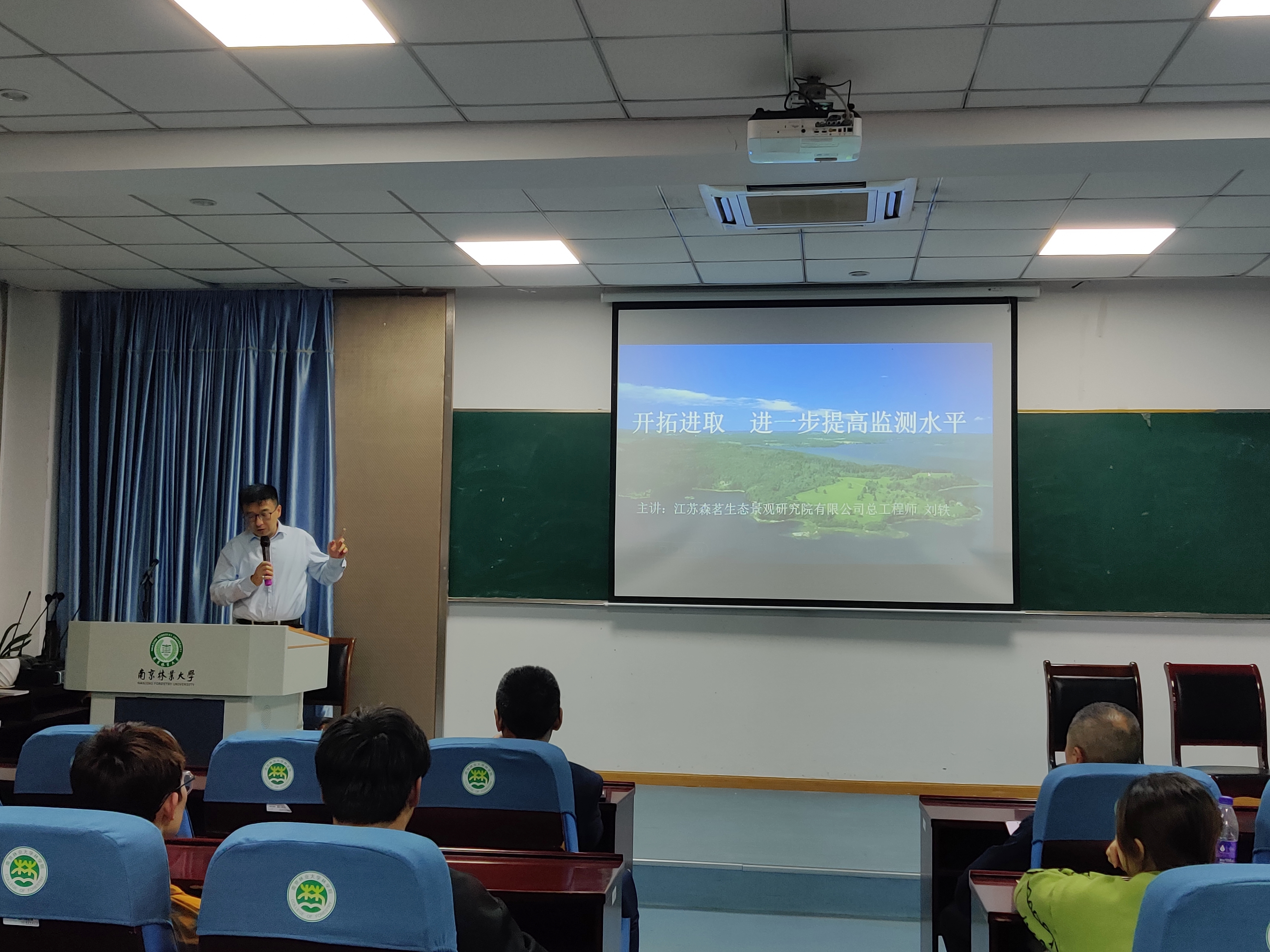 讲座中,刘总工程师分别从江苏森茗生态景观研究院有限公司主营业务简介、3S技术在公司业务中的应用、展望与调查专业技能的要求三个方面讲述。他强调这次讲座实质上是一次交流会,让同学们在交流中更深入的了解“林业是什么?”“该干什么?”“从事什么工作?”三个问题。