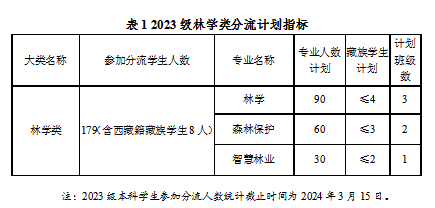 林学类学生只能在本专业大类内选择就读专业,不得跨大类选择专业。本次成人a片 分流工作涉及的专业有林学、森林保护、智慧林业3个专业。专业分流人数已由学校招生部门确定,原则上不予更改,各专业的分流指标见表1。