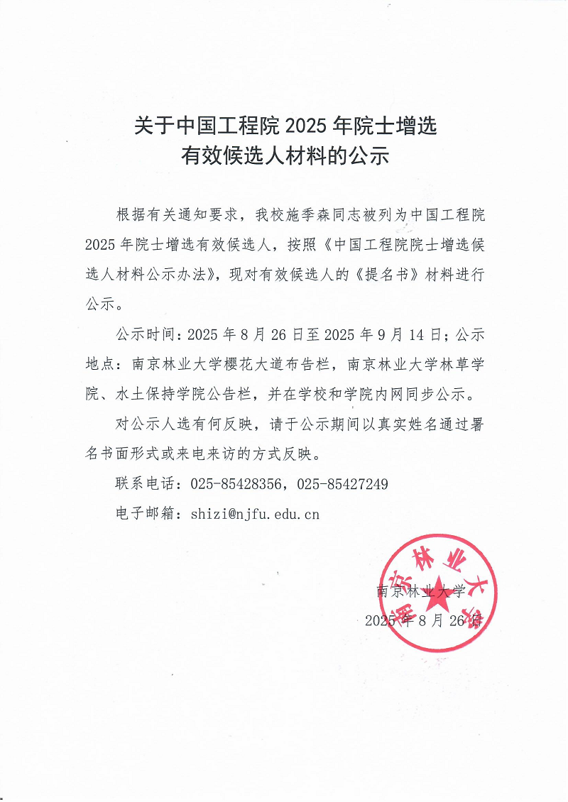 关于中国工程院2025年院士增选有效候选人材料的公示