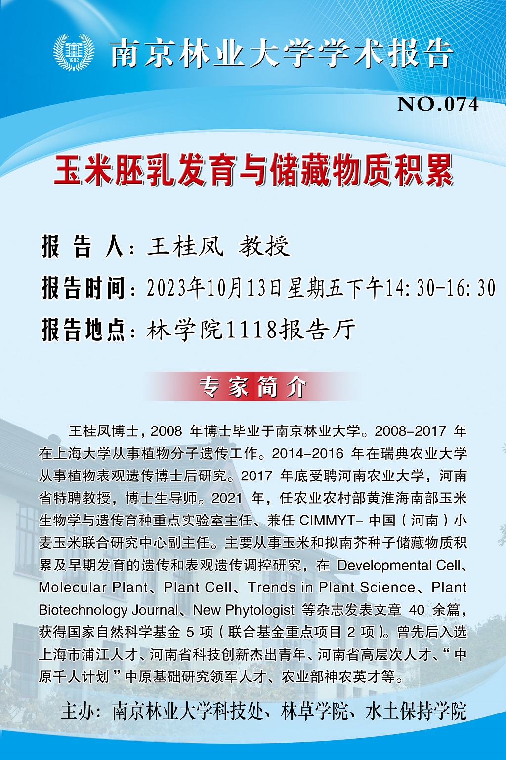 【校友学术报告】玉米胚乳发育与储藏物质积累
