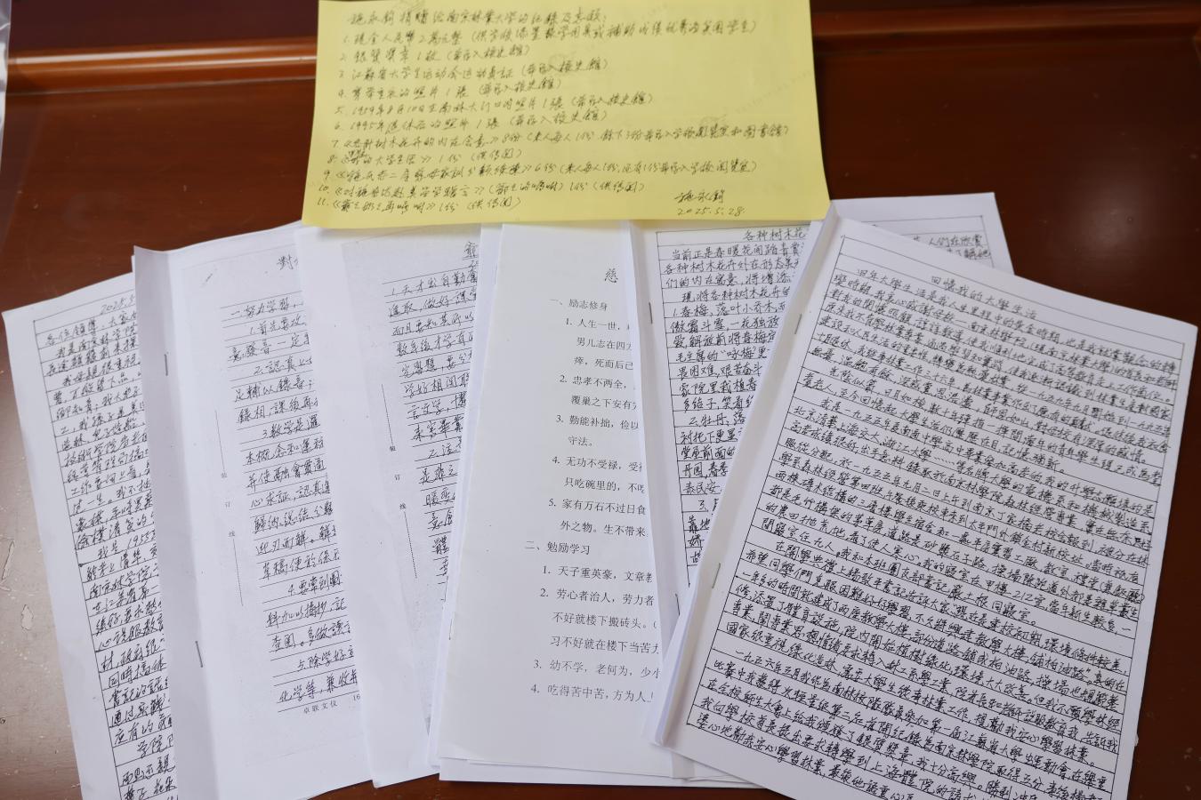 施校友亲笔整理写下《回忆我的大学生活》、《各种树木花卉的内在寓意》、《慈母家训》等数篇文章